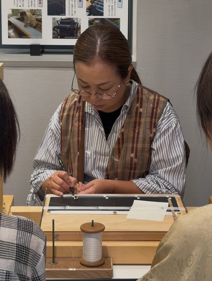 RYUKYU-KASURI: Taneito-tori (marking of kasuri parts with ink according to the pattern for kasuri tying)