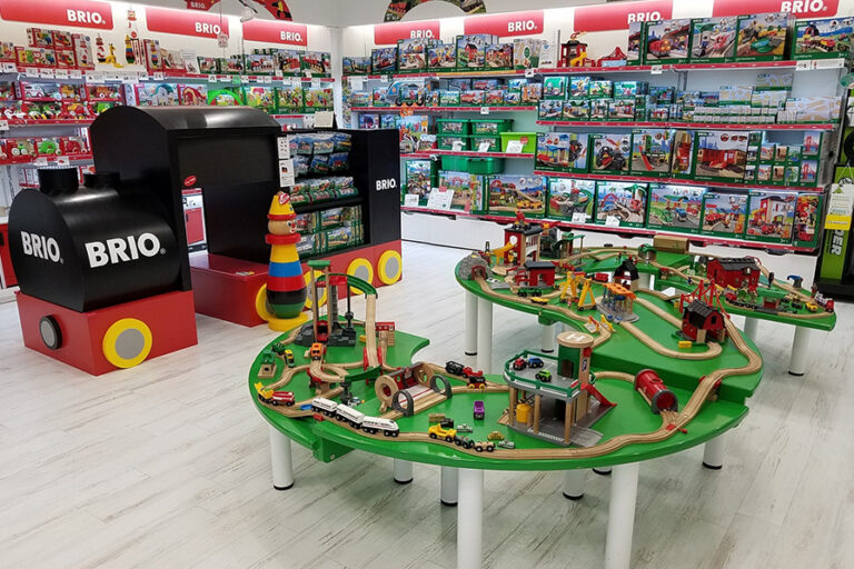 HAKUHINKAN is a specialty toy store offering around 200,000 items full of playfulness, including toys, stuffed animals, games, and variety goods from the first to the fourth floor. We also have a hands-on facility—HAKUHINKAN RACING PARK, a slot car circuit.