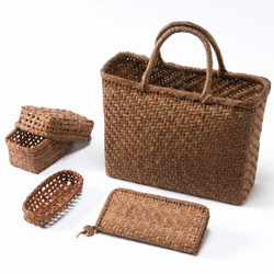 カレンブロッソのヒットアイテム「カフェぞうり」の竹細工バージョンを製作予定。その他に竹細工の和小物やインテリア雑貨も展示販売します。
