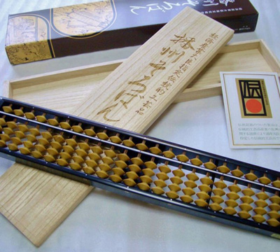 そろばんの玉はカバ・ツゲの木から、枠にはコクタン等、堅くて重い天然の木を用いています。「うろこ細」等繊細な伝統技術によって組み立てられたそろばんは、使いやすさ、珠(たま)はじきの良さに加え磨き上げられた美しさを備え、まさに木の美術品としての価値も備えています。