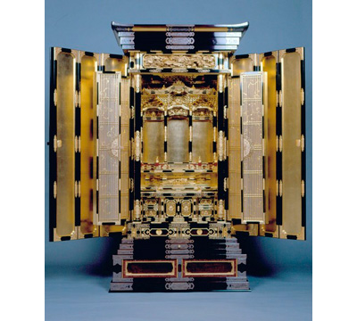 三条は古くから金物職人の町、また燕は日本一の洋食器の産地であり、仏具の金具にもその技術が活かされ、正統的な宮殿造り、格調高い本漆塗、金箔押し、優れた飾り金具には定評があります。