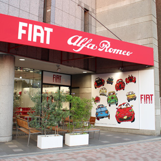 イタリアを代表するブランド車「FIAT」と「Alfa Romeo」を取り扱う店内にはFIAT CAFFEが併設されており、車を見ながら本格的なイタリアンコーヒーを楽しむことができます。ここでしか見ることのできない日本のモノづくりとイタリアの文化が融合したオリジナルアイテムを特別展示いたします。