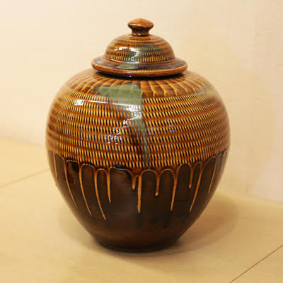 ・生乾きの時に文様を入れる飛びかんなの壷等