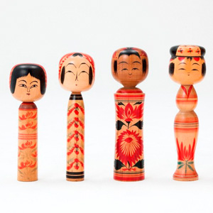 宮城県内には、「鳴子(なるこ)こけし」「作並(さくなみ)こけし」「遠刈田(とおがつた)こけし」「弥治郎(やじろう)こけし」「肘折(ひじおり)こけし」の5つの伝統こけしがあります。