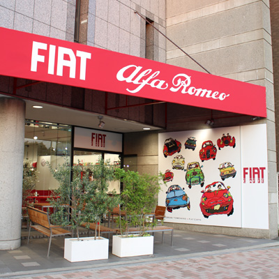 イタリアを代表するブランド車「FIAT」と「Alfa Romeo」を取り扱う店内にはFIAT CAFFEが併設されており、車を見ながら本格的なイタリアンコーヒーを楽しむことができます。ここでしか見ることのできない日本のモノづくりとイタリアの文化が融合したオリジナルアイテムを特別展示いたします。