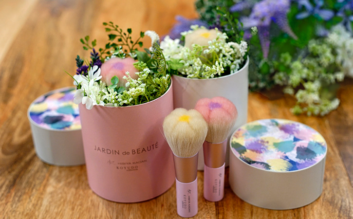 花を飾ると心が豊かになり女性の魅力が高まると言われています。細やかに一本一本手作りされたお花の形の熊野筆でお化粧すれば、いつものメイクもプロの仕上がりに。