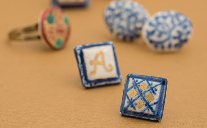 店頭で販売予定のアクセサリーや小物の製作・絵付けの様子を実際に見ることができます。