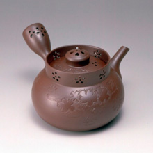 鉄分を多く含む紫泥土を用いて、「還元焼成」という方法で作られている萬古焼の急須は、