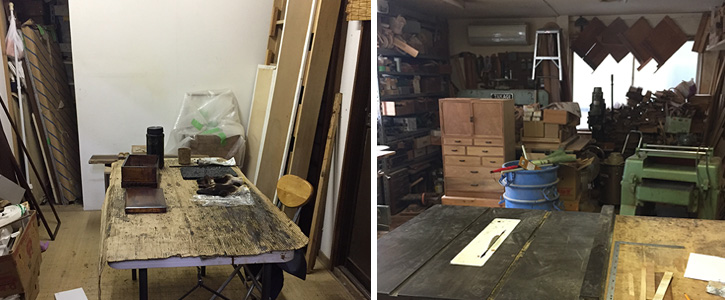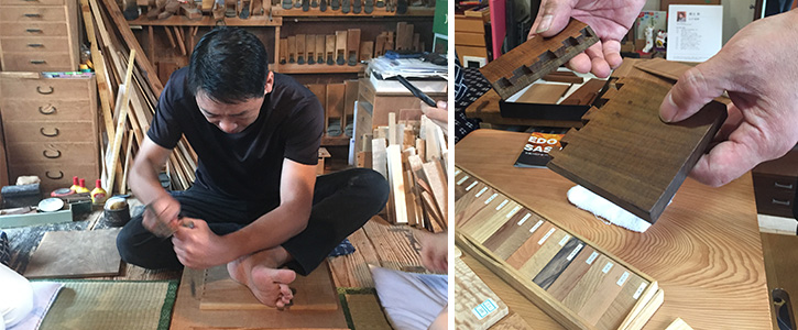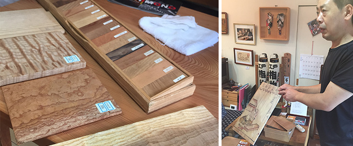 左 渡辺彰さん/右 江戸指物でよく使われる木材
