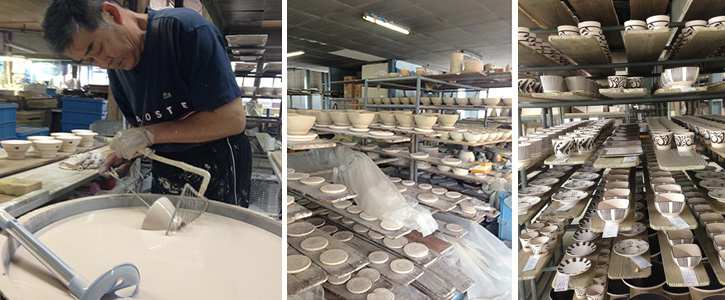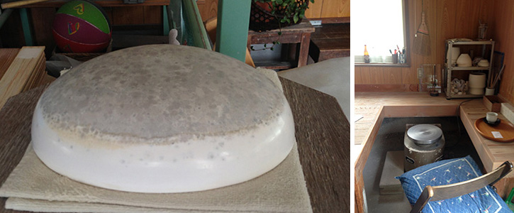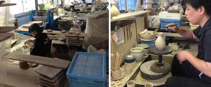 梅山窯の工房内と制作風景の様子