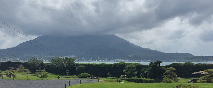 8月上旬に、JTCW取組み先の産地がある鹿児島に到着しました。この頃、最高気温は37度。日差しも強くじっとしていても体中から汗が噴き出してくる感じです。台風が近づいているようで、出迎えてくれた桜島の上空はすっぽりと雲に覆われています。