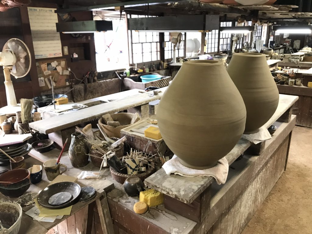 釉薬もたくさんの種類があり黒釉に青流し・玉流し・白流し、色鮮やかな三彩、飴釉など力強く素朴で日常の食卓を彩ってくれる器などたくさんの種類の器があります。その一方、特異な表情で印象に残ったものが、ちょっとゴツゴツした表情の蛇蝎釉や龍門司焼でしか見ることのできない鮫肌釉などは、とても特徴的であまり見たことがなく、とても面白いと思い、今年のJTCWで当店で商品の提案ができればとも思いました。