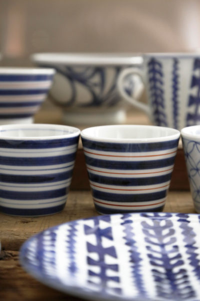 明治以後は、東南アジア向けの飲食器の産地として生産を伸ばしましたが、戦後は柳宗悦らの指導を受け、大量生産を行う産地から、手作り、手描きを重視した伝統的工芸品の磁器の産地へと変わっていきました。