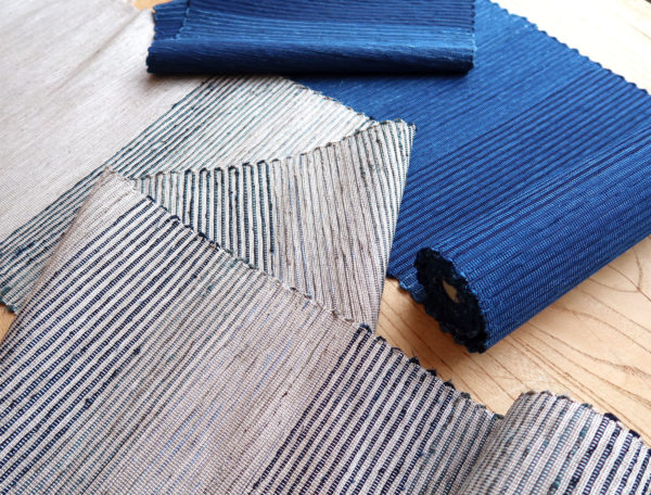 置賜紬は山形県内の3地区で織られていますが、それぞれ技法も特徴も異なり、様々な表情を楽しめます。草木染の優しい風合いの糸で紡がれる伝統と、gentenのこだわりの革とのコラボレーションをお楽しみください。
